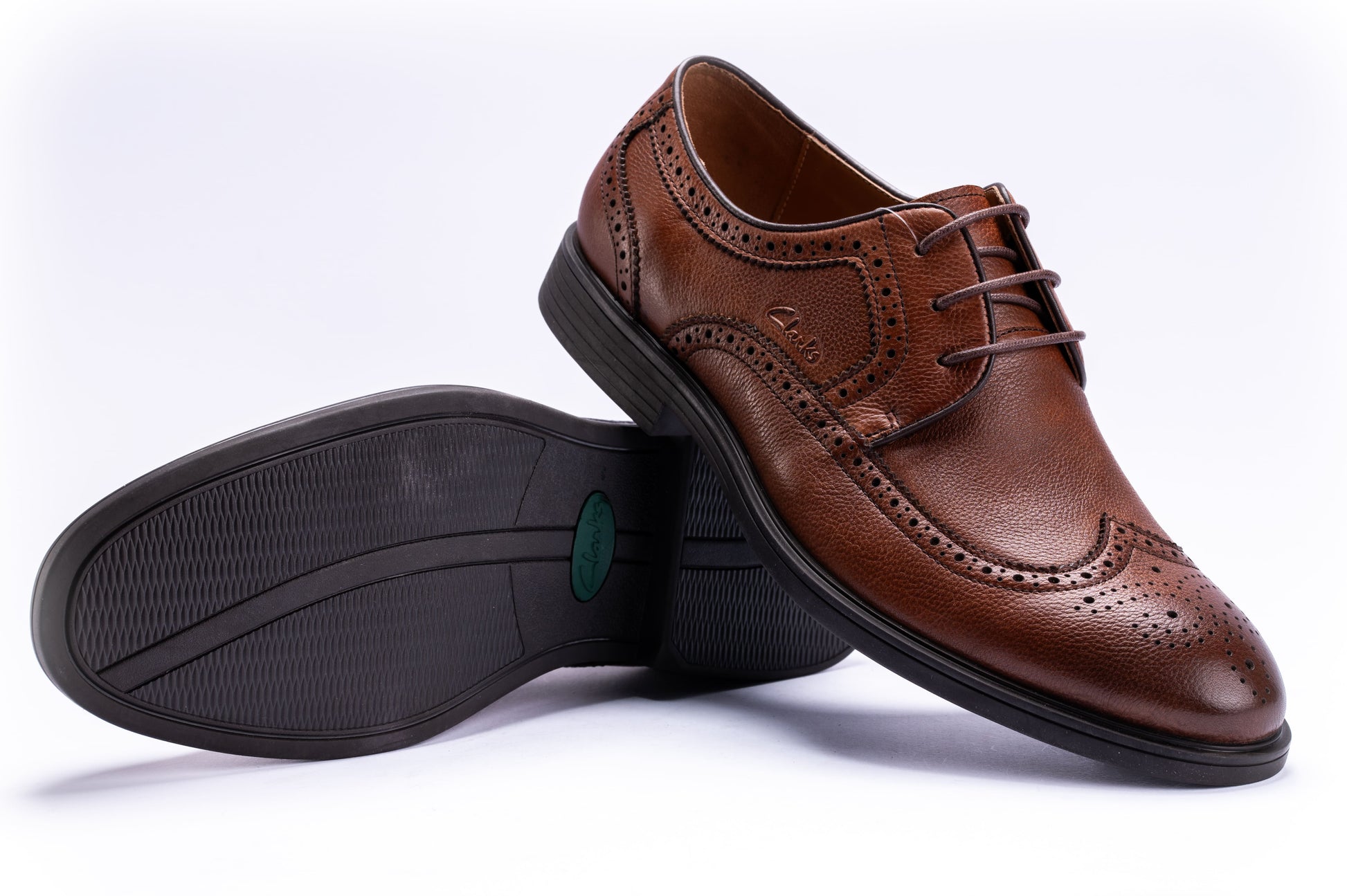- Wingtip brogue design with perforated detailing along the toe and seams