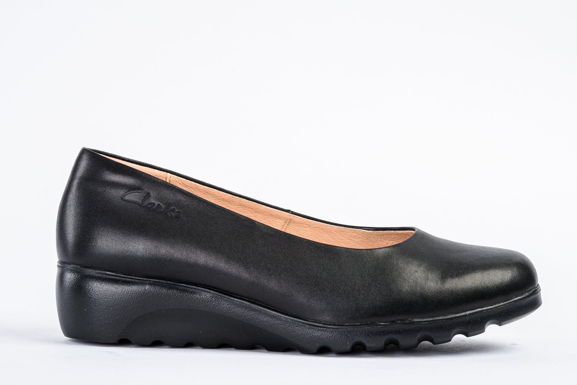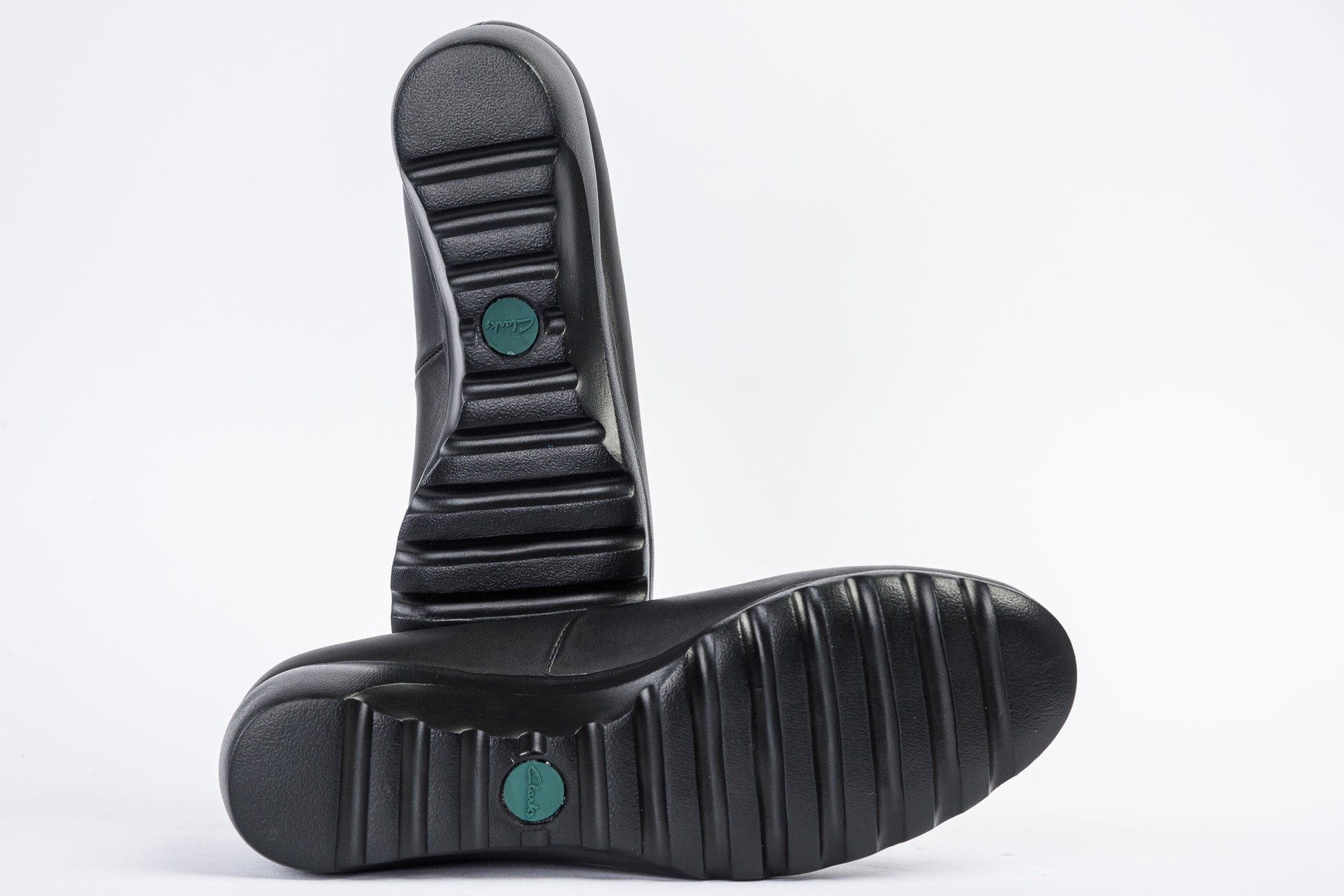 Elora carries herself with ease. Made from smooth matte black material with a soft sheen, this closed-toe wedge keeps things minimal but thoughtfully crafted. The low, integrated wedge heel offers subtle lift without breaking the clean silhouette. A nude inner lining softens the contrast, while a lightly textured sole ensures grip. From its rounded toe to the gently sloped heel, Elora is a quiet essential — calm, composed, and ready for anything.